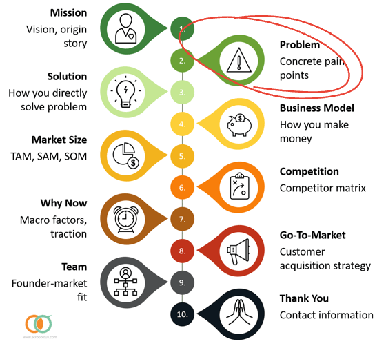 A strong problem section often flows naturally from your origin story. Many great startups start with someone experiencing a problem and saying, “There has to be a better way.” Ask yourself: